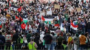 ولم تعد شعارات: "حق إسرائيل في الوجود"، و"ضرب الإرهابيين"، و"معاداة السامية" تسيطر وحدها على المشهد الأميركي، وتزاحمها الآن شعارات منها: "أبارتايد"، "الإبادة الجماعية"، و"التطهير العرقي"، خاصة بين أوساط الشباب الأميركيين.