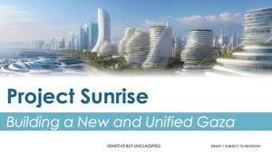 عمون - أعدت إدارة الرئيس الأميركي دونالد ترمب مخططاً بشأن إعادة إعمار غزة تحت اسم "شروق الشمس" Sunrise، لتحويل القطاع إلى مدينة تكنولوجية متطورة، حسبما ذكرت صحيفة "وول ستريت جورنال".